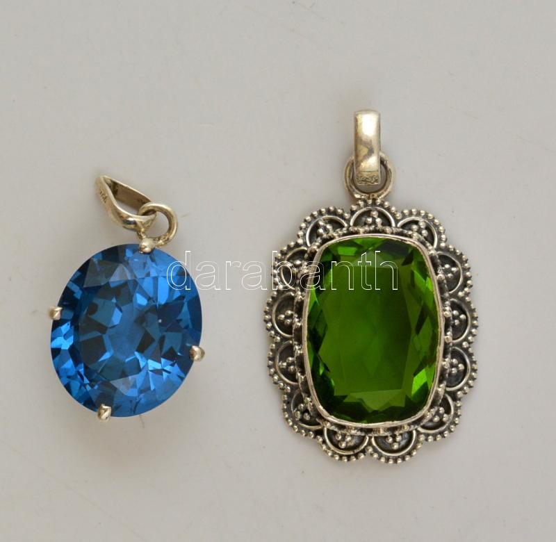 Leírás: Ezüst(Ag) medál, 2 db, szintetikus kövekkel, jelzett, bruttó: 11,3 g