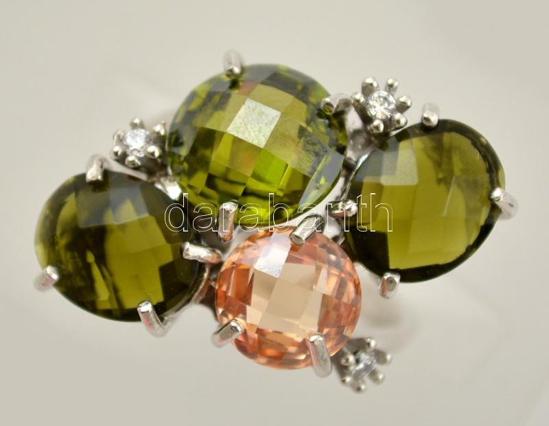 Leírás: Ezüst(Ag) négyköves gyűrű, csiszolt üveg kövekkel, jelzett, méret: 55, bruttó: 8,3 g