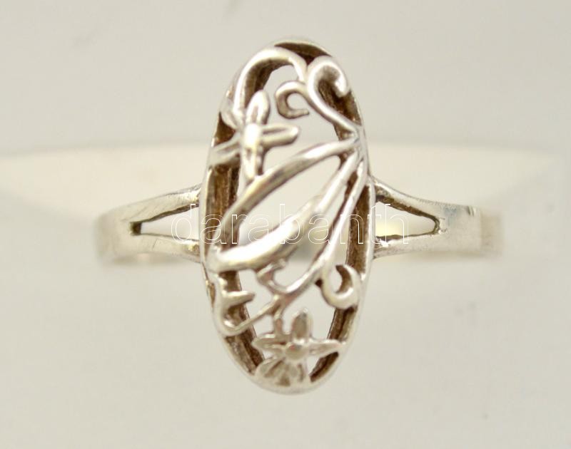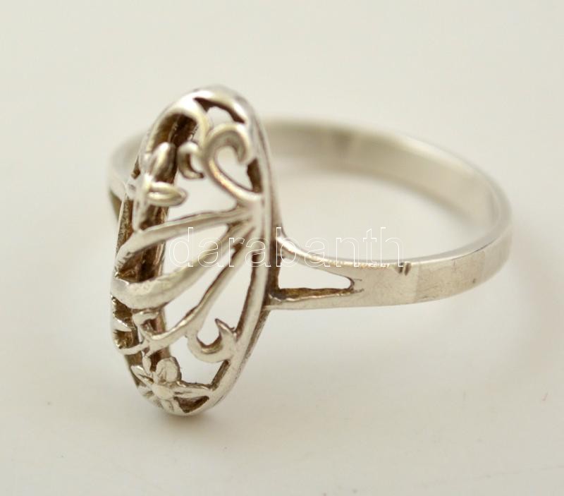 Leírás: Ezüst(Ag) virágos, áttört ovális gyűrű, jelzett, méret: 55, nettó: 1,7 g