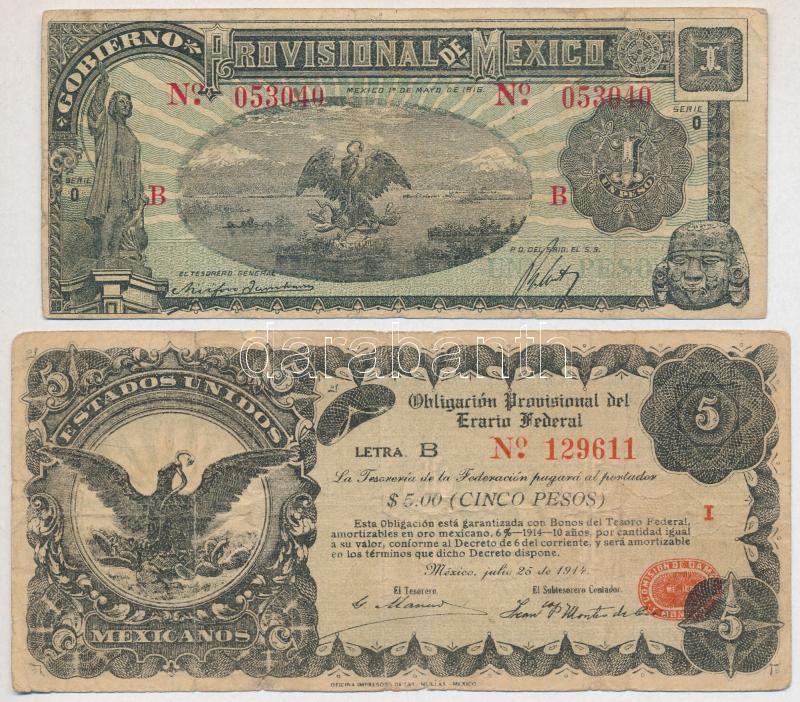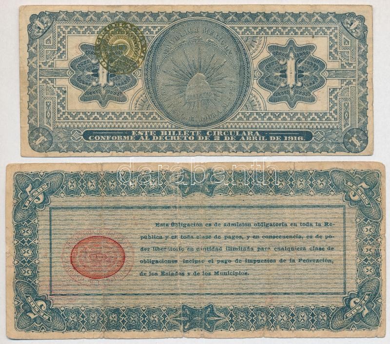 Leírás: Mexikó / Ideiglenes kormány 1916. 1P + 1914. "Ideiglenes Szövetségi Kölcsönykötvény" 5P T:III
