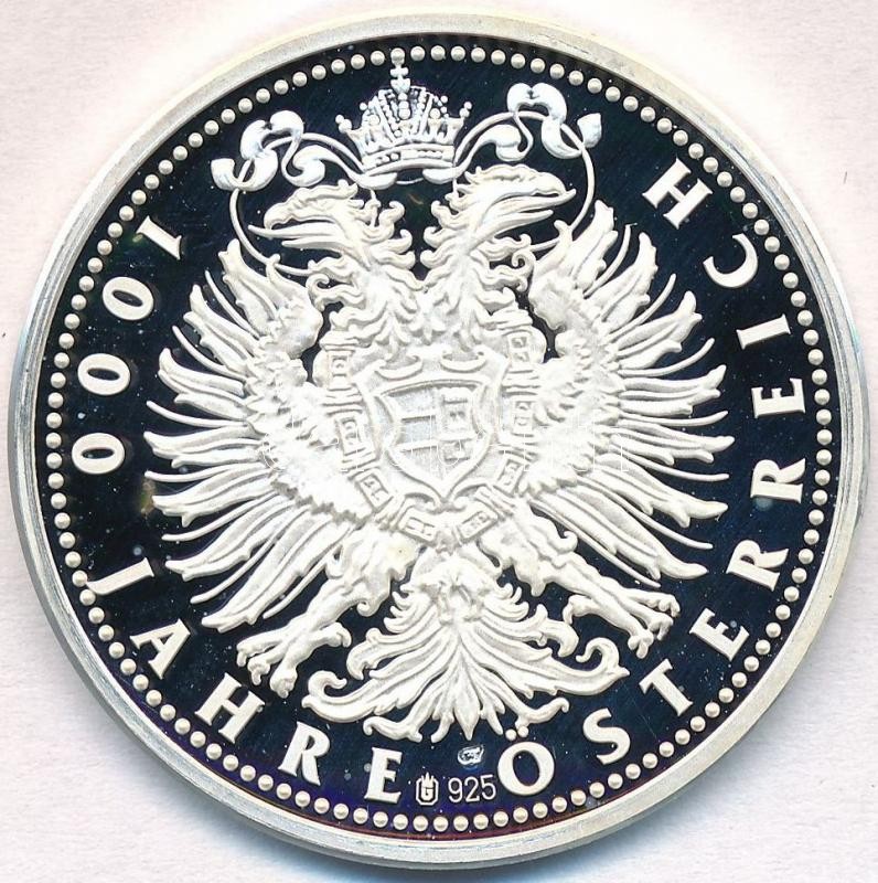 Ausztria 1976. "Ausztria 1000 éves / I. József főherceg" jelzett Ag emlékérem (19,95g/0.925/38,5mm) T:PP