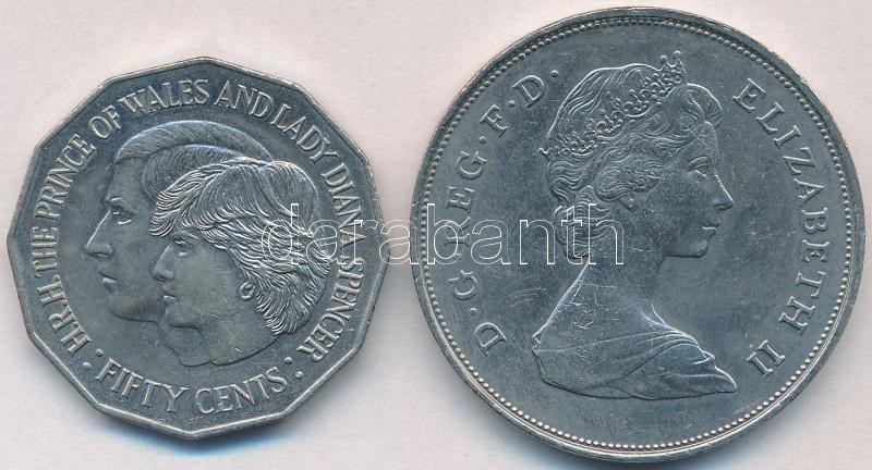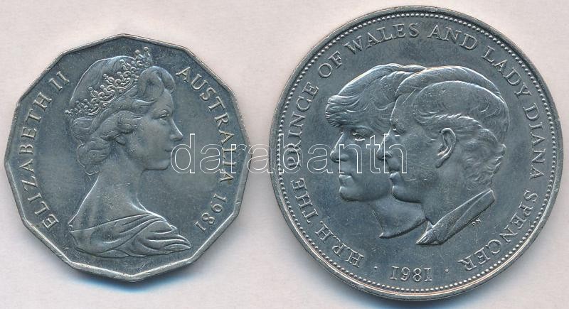 Vegyes: Ausztrália 1981. 50c Cu-Ni "Károly herceg és Lady Diana esküvője" + Nagy-Britannia 1981. 25P Cu-Ni "Károly herceg és Lady Diana" T:2