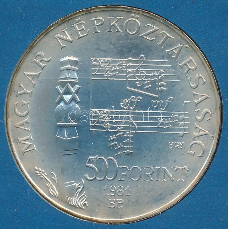 Leírás: 1981. 500Ft Ag "Bartók Béla" sérült MNB tokban T:BU