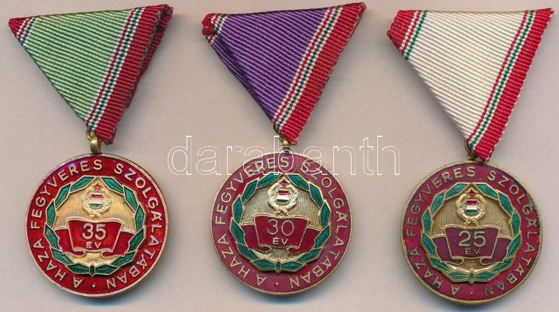 Leírás: 1965. "Szolgálati Érdemérem - A Haza Fegyveres Szolgálatában" 25, 30 és 35 év után, zománcozott Br kitüntetés mellszalagon, egyik dísztokban T:1-,2
