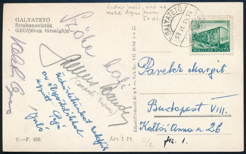 1952 Galyatető, Olimpia utáni pihenőtábor, magyar sportolók, Szőke Kat... https://www.darabanth.com/hu/295-Gyorsarveres/295.0/Festmeny-mutargy-papirregiseg-egyeb/Alairas~200020/1952-Galyateto-Olimpia-utani-pihenotabor-magyar-sportolok-Szoke-Kati-Keleti-Agnes-es-ma~II1568356