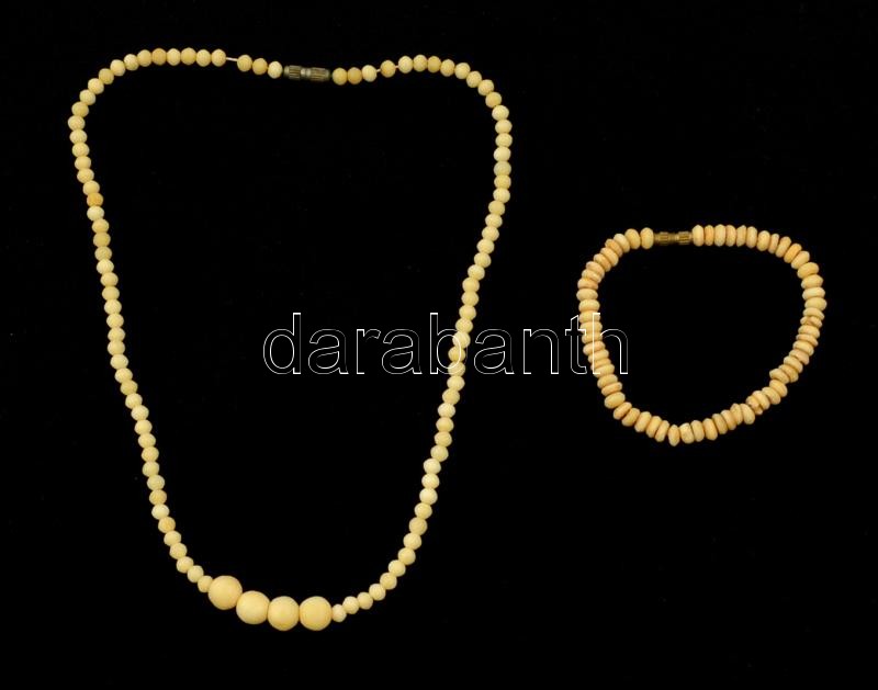 Leírás: Csont gyöngysor, h: 40 cm + csont karkötő