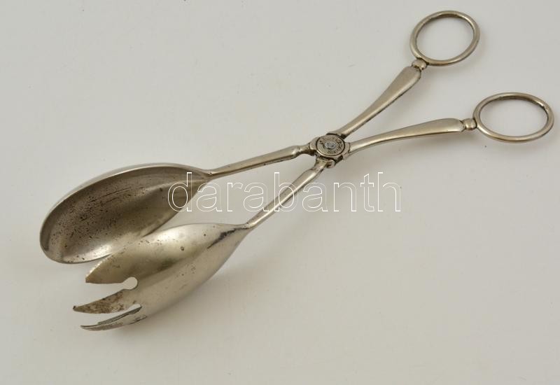 Leírás: Ezüstözött salátaszedő kanál, jelzett (silver plated), h: 26 cm