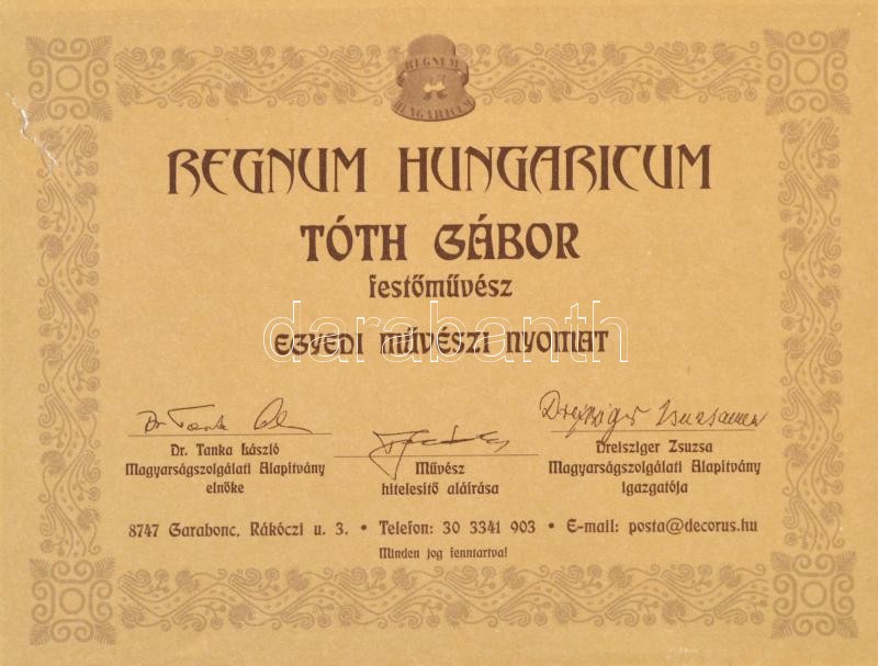 Hajdúszoboszló, Regnum Hungaricum, egyedi művészi nyomat, Tóth Gábor f... https://www.darabanth.com/hu/295-Gyorsarveres/295.0/Festmeny-mutargy-papirregiseg-egyeb/Bolhapiac~200012/Hajduszoboszlo-Regnum-Hungaricum-egyedi-muveszi-nyomat-Toth-Gabor-festomuvesz-fa-keretb~II1566082
