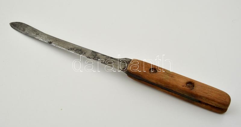 Régi csontozókés, fa nyéllel, pengehossz: 23 cm, teljes hossz: 36 cm https://www.darabanth.com/hu/295-Gyorsarveres/295.0/Festmeny-mutargy-papirregiseg-egyeb/Bolhapiac~200012/Regi-csontozokes-fa-nyellel-pengehossz-23-cm-teljes-hossz-36-cm~II1572464