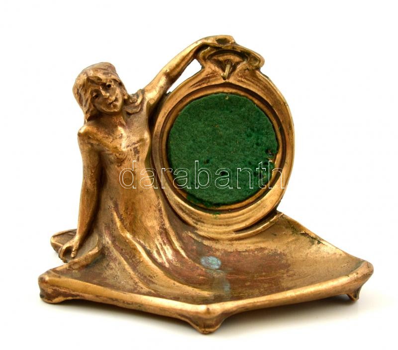 Leírás: Szecessziós óratartó, réz-plüss, 8×12 cm