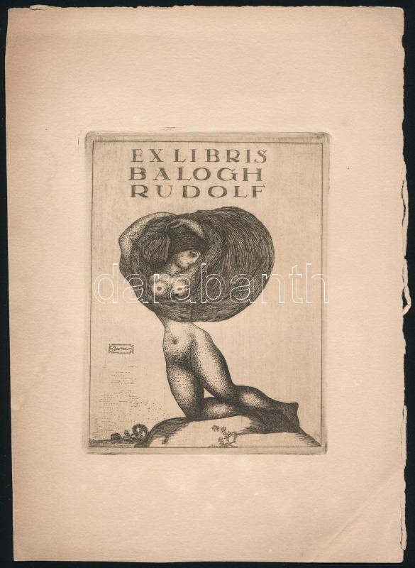 Leírás: Gara Arnold (1882-1929): Erotikus ex libris Balogh Rudolf. Rézkarc, papír, jelzett, 12×10 cm