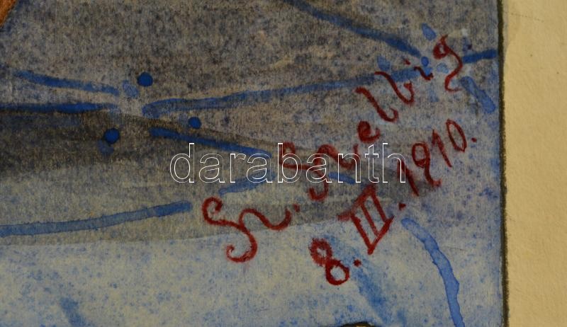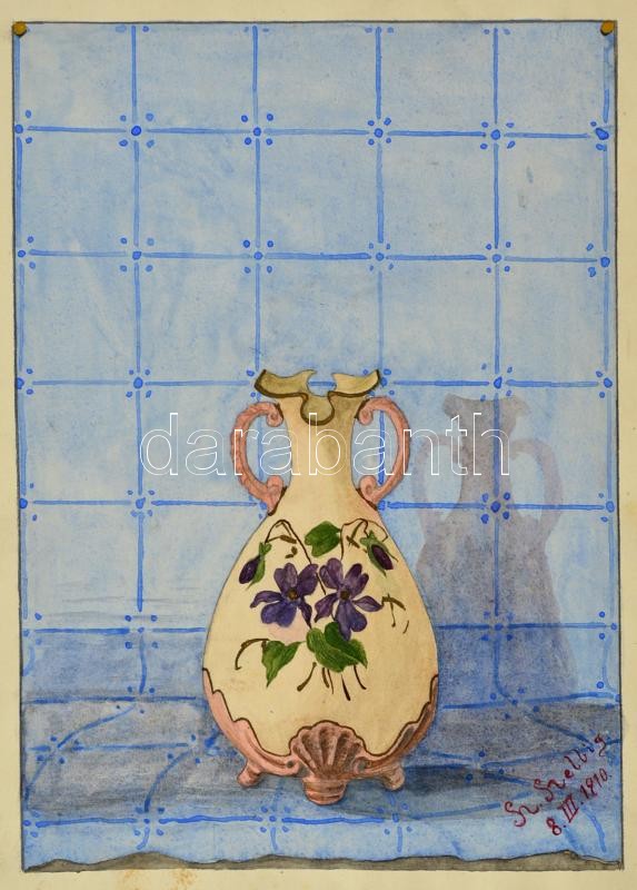 Leírás: Henri Helbig (?-?): Vázás csendélet 1910. Vegyes technika, papír, jelzett, foltos, 31×22 cm