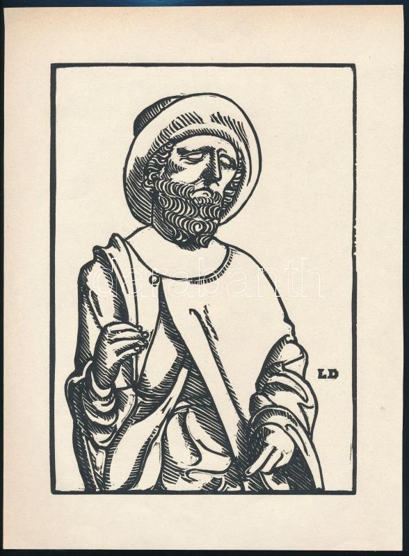LD jelzéssel: Középkori városi polgár. Fametszet, papír, 23x16 cm https://www.darabanth.com/hu/295-Gyorsarveres/295.0/Festmeny-mutargy-papirregiseg-egyeb/Festmenyek-es-grafikak~500018/LD-jelzessel-Kozepkori-varosi-polgar-Fametszet-papir-23x16-cm~II1569787