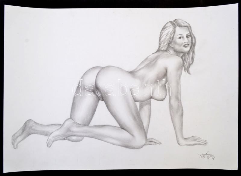 Tóth György: Akt négykézláb. Ceruza, papír, jelzett, 29,5x42 cm https://www.darabanth.com/hu/295-Gyorsarveres/295.0/Festmeny-mutargy-papirregiseg-egyeb/Festmenyek-es-grafikak~500018/Toth-Gyorgy-Akt-negykezlab-Ceruza-papir-jelzett-29-5x42-cm~II1569902