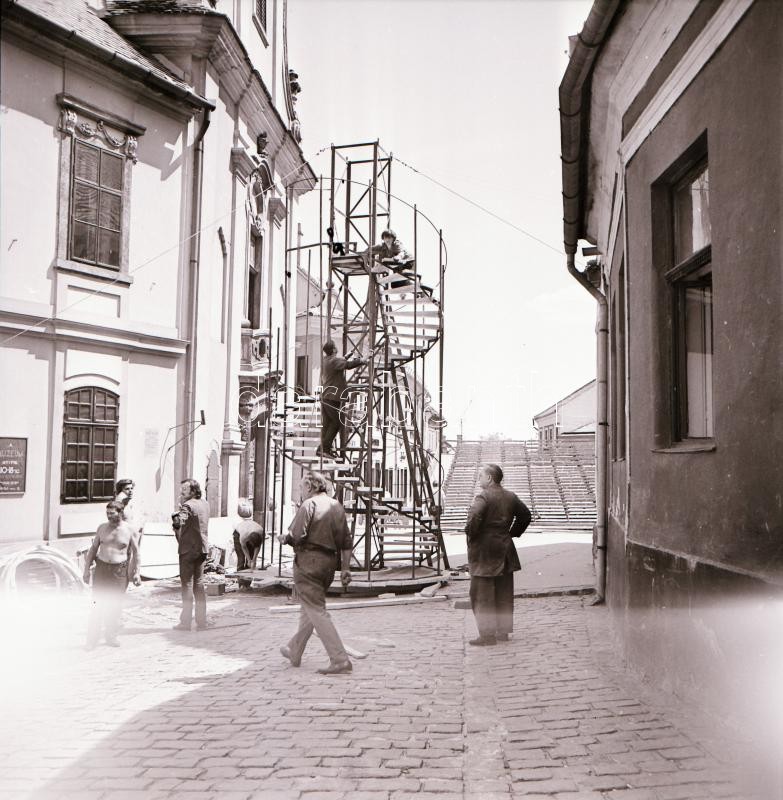 Leírás: 1973 Szentendre, Épül a Teátrum, 15 db 6x6 cm-es fotónegatív