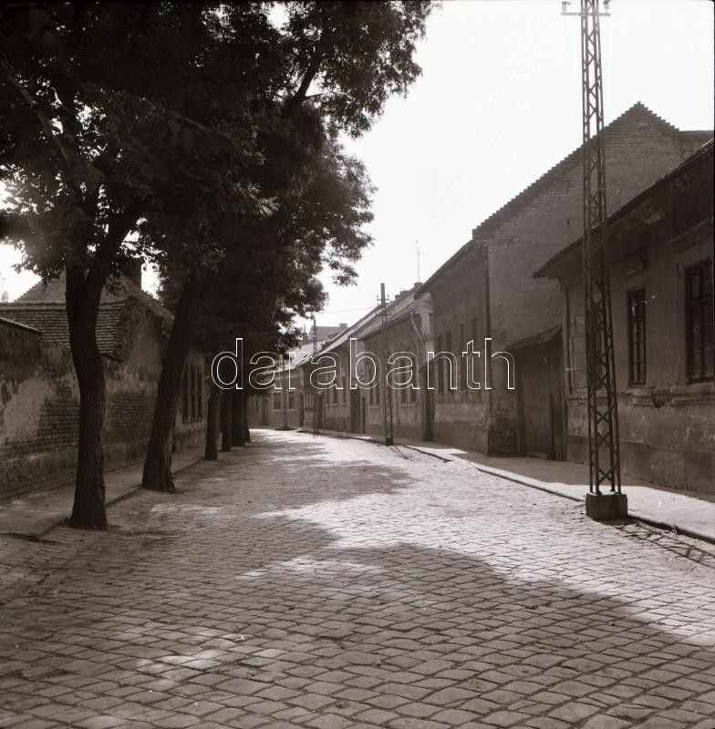 Leírás: Kecskeméti utcaképek, épületek, Medgyesi László által készített fotók negatívjai, 16 db, 6x6 cm