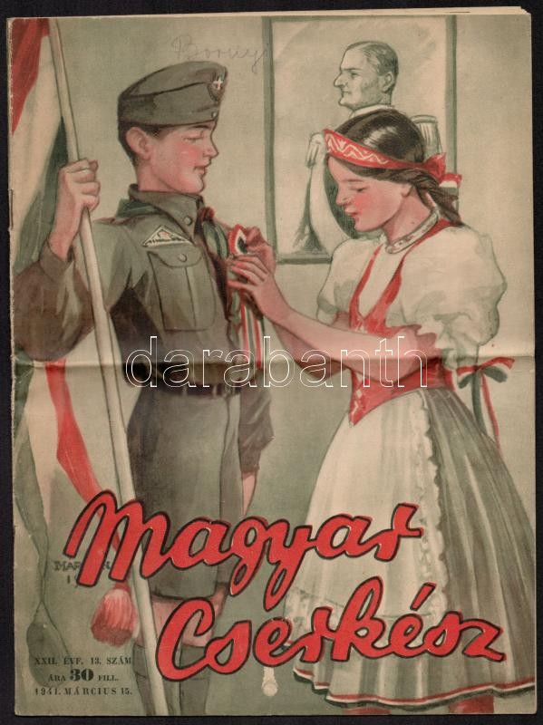 1941 Magyar Cserkész. XXII. évf. 13. szám, 1941. március 15. Szerk.: D... https://www.darabanth.com/hu/295-Gyorsarveres/295.0/Festmeny-mutargy-papirregiseg-egyeb/Nyomtatvanyok~200030/1941-Magyar-Cserkesz-XXII-evf-13-szam-1941-marcius-15-Szerk-Dr-Sztrilich-Pal-Papirk~II1572958