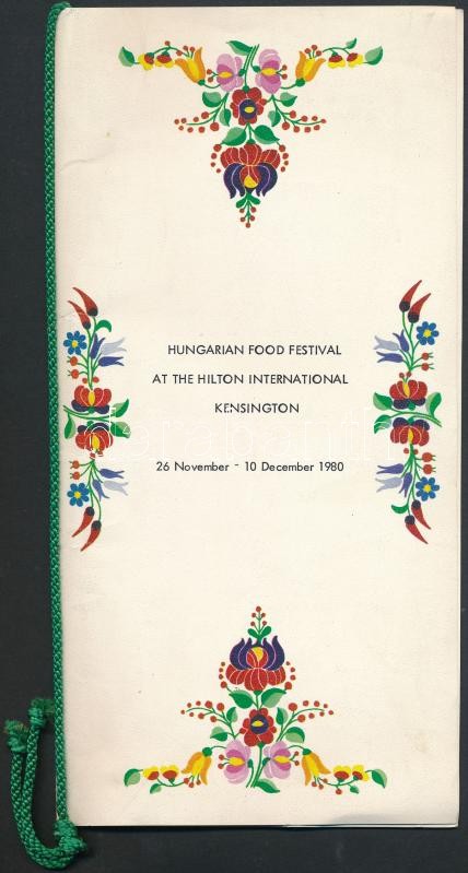1980 Hungarian Food Festival at the Hilton International Kensington, é... https://www.darabanth.com/hu/295-Gyorsarveres/295.0/Festmeny-mutargy-papirregiseg-egyeb/Nyomtatvanyok~200030/1980-Hungarian-Food-Festival-at-the-Hilton-International-Kensington-etlap~II1566289