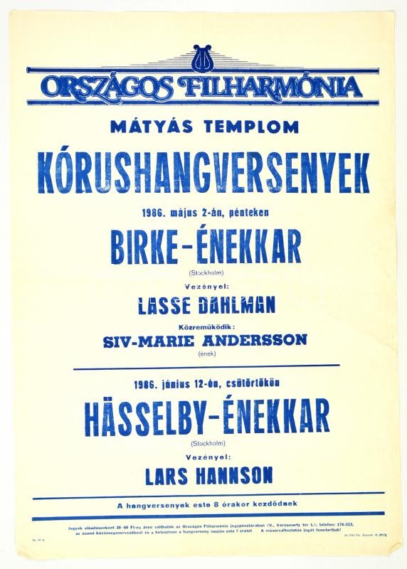 1986 Országos Filharmónia Mátyás templom kórushangversenyek plakátja, ... https://www.darabanth.com/hu/295-Gyorsarveres/295.0/Festmeny-mutargy-papirregiseg-egyeb/Plakat~200031/1986-Orszagos-Filharmonia-Matyas-templom-korushangversenyek-plakatja-Lasse-Dahlman-Lars-Hann~II1567412