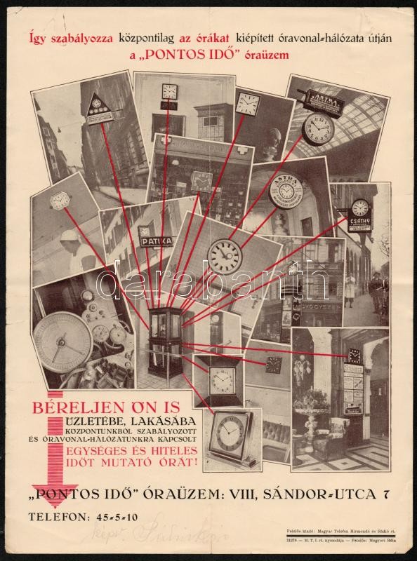 A "Pontos idő" óraüzem reklám szórólapja https://www.darabanth.com/hu/295-Gyorsarveres/295.0/Festmeny-mutargy-papirregiseg-egyeb/Reklam~200022/A-Pontos-ido-orauzem-reklam-szorolapja~II1566121