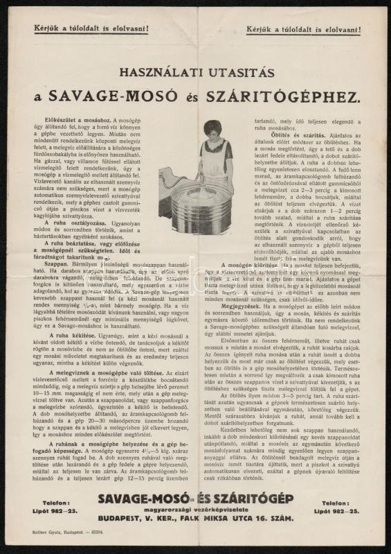 Leírás: A Savage mosó- és szárítógép reklám szórólapja