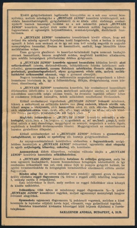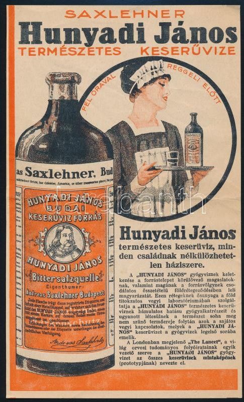cca 1910-1930 Saxlehner Hunyadi János természetes keserűvize, szórólap... https://www.darabanth.com/hu/295-Gyorsarveres/295.0/Festmeny-mutargy-papirregiseg-egyeb/Reklam~200022/cca-1910-1930-Saxlehner-Hunyadi-Janos-termeszetes-keseruvize-szorolap-hajtasnyommal-13x22-c~II1567509