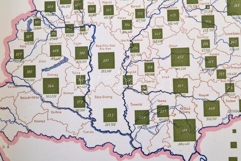 cca 1920 Nagybirtokok Magyarországon / Grandes propriétés en Hongrie, a "Magyarország gazdasági térképekben" kiadványból, magyar és francia magyarázó szöveggel, a trianoni határok feltüntetésével, 26,5×37,5 cm