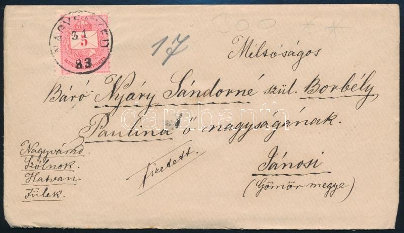 Leírás: 1883 Nagyenyed, Nyáry László (?-?) nevelője, Vincze Dániel levele neveltje édesanyjának, Nyáry Sándorné Borbély Paulinának (1837-1912) családi ügyekben, viaszpecsétes borítékkal