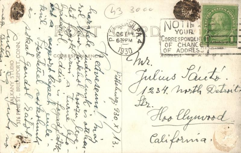 1930 Pittsburgh, a New York-i magyar operatársaság csoportképe az autóbuszukkal és kutyával / New York Hungarian Opera Company with their autobus, dog, group photo (ragasztónyomok / glue marks)