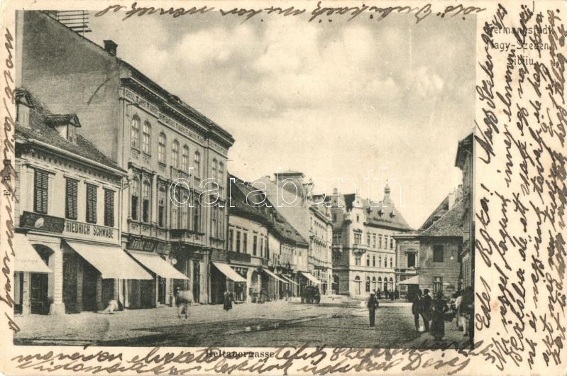 Nagyszeben, Hermannstadt, Sibiu; Heltauergasse / utcakép, Friedrich Sc... https://www.darabanth.com/hu/295-Gyorsarveres/295.0/Kepeslapok/Erdely~6/Nagyszeben-Hermannstadt-Sibiu-Heltauergasse-utcakep-Friedrich-Schwabe-Franz-Zein-uzletei-~II1570606
