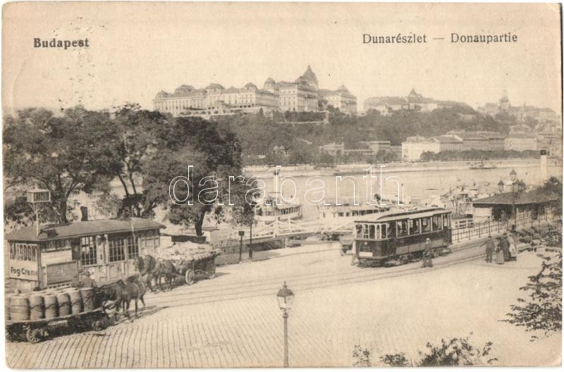 Budapest V. Dunai pesti rakpart háttérben a Királyi várral, villamos, ... https://www.darabanth.com/hu/295-Gyorsarveres/295.0/Kepeslapok/Magyarorszag~5/Budapest-V-Dunai-pesti-rakpart-hatterben-a-Kiralyi-varral-villamos-hordoszallito-szekerek~II1571178
