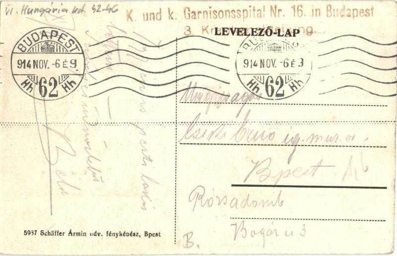Budapest XIII. 16. számú helyőrségi kórház (ma Honvédkórház), legénységi pavilonok, Schäffer Ármin udvari fényképész kiadása. 'K.u.K. Garnisonsspital Nr. 16 in Budapest 3. Krankenabteilung' (EK)
