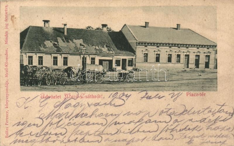 Leírás: Mezőcsát, Piac tér, Balázs Ferencz kiadása (kis szakadás / small tear)