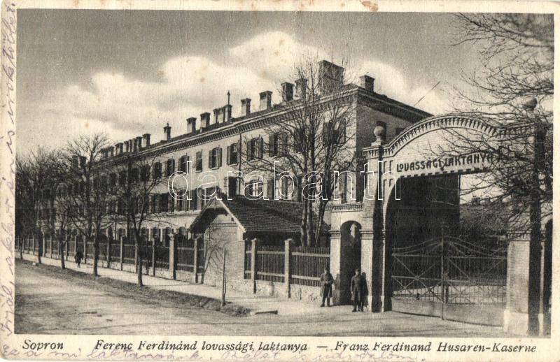 Sopron, Ferenc Ferdinánd lovassági laktanya (fa) https://www.darabanth.com/hu/295-Gyorsarveres/295.0/Kepeslapok/Magyarorszag~5/Sopron-Ferenc-Ferdinand-lovassagi-laktanya-fa~II1567193