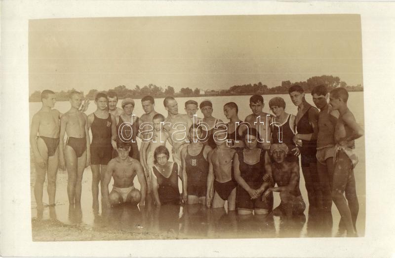 Leírás: Nemzeti Sport Club (NSC) folyami úszó csoportja / Hungarian National Sport Club swimming team, photo (Rb)
