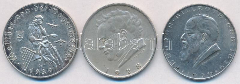Ausztria 1928. 2Sch Ag "100 éve halt meg Schubert" + 1929. 2Sch Ag "100 éve született Billroth" + 1930. 2Sch Ag "7 évszázada halt meg Vogelweide" T:2