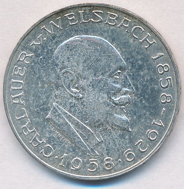 Leírás: Ausztria 1958. 25Sch Ag "Carl Auer von Welsbach" T:2 Austria 1958. 25 Schilling Ag "Carl Auer von Welsbach" C:XF
