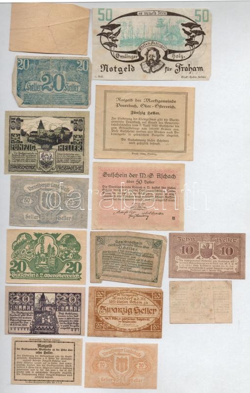 Ausztria 1920. 10-50h (15xklf) utalvány és szükségpénz, többek között Salzburg, Freistadt, Amstetten és Waidhofen T:II-III- Austria 1920. 10-50 Heller (15xdiff) vouchers and necessity notes, with notes from Salzburg, Freistadt, Amstetten and Waidhofen C:XF-VG