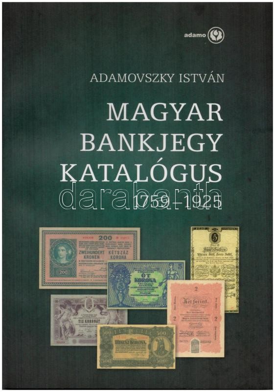 Adamovszky István: Magyar bankjegy katalógus 1759-1925. Budapest, 2009... https://www.darabanth.com/hu/295-Gyorsarveres/295.0/Numizmatika/Numizmatikai-irodalom~400002/Adamovszky-Istvan-Magyar-bankjegy-katalogus-1759-1925-Budapest-2009-Elso-kiadas-Uj-allapo~II1569112