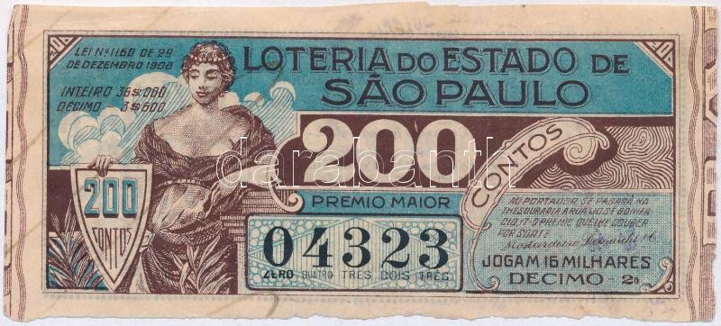 Brazília 1930. "Sao Paulo város lottó" lottójegy hátoldalán bélyegzéssel T:III vágott
