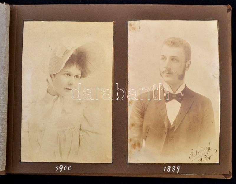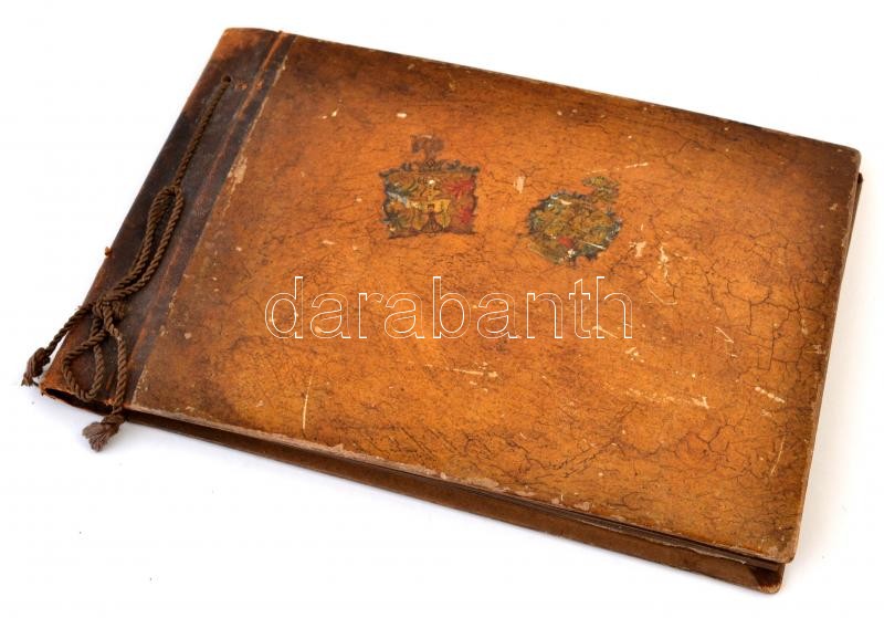 Leírás: 1941 Nemesi fotóalbum: berethei Marton Ödön (1867-?) és felesége, Belatiny-Braun Irma (?-?) fényképei 1867-től 1940-ig, félbőr kötésű, címerekkel díszített albumba rendezve