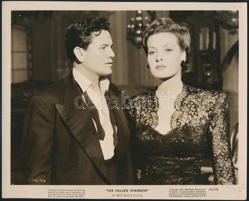 Leírás: 1943 "" The Fallen Sparrow RKO film fotója, a képen John Garfielddal és Maureen O' Harával, sarkain apró lyukakkal, 20,5x25,5 cm