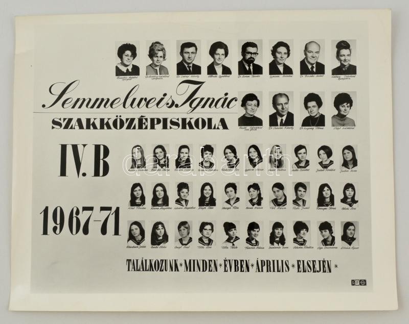 1971 A Semmelweis Ignác Szakközépiskola tablója, szakadással, 24x30 cm https://www.darabanth.com/hu/296-Gyorsarveres/296.0/Festmeny-mutargy-papirregiseg-egyeb/Foto~19/1971-A-Semmelweis-Ignac-Szakkozepiskola-tabloja-szakadassal-24x30-cm~II1577184