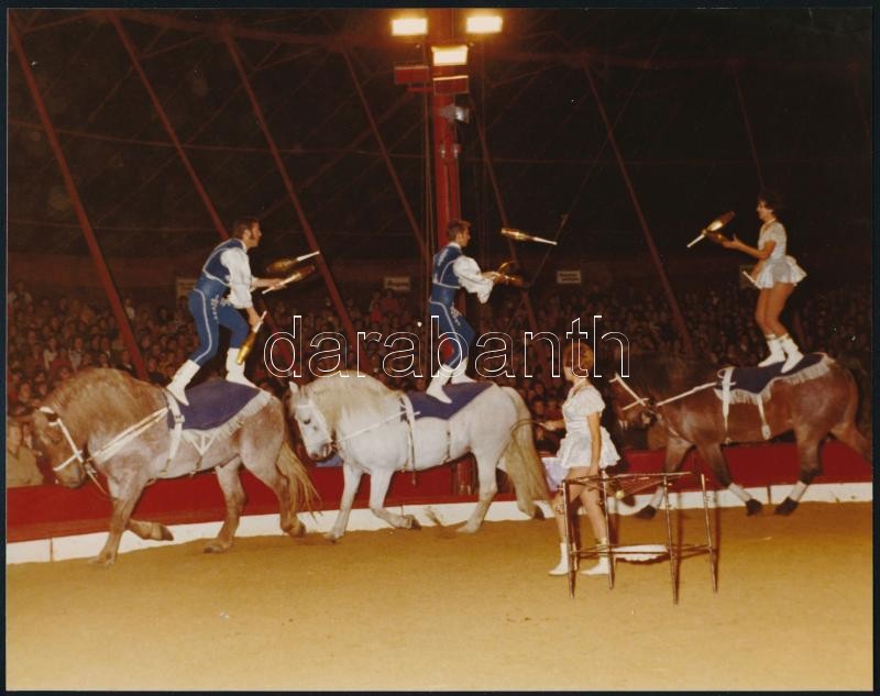 Leírás: 1978 a Fővárosi Nagycirkusz Dunai csoportjának fellépése, fotó, hátulján feliratozva, 20×25,5 cm
