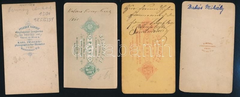 Leírás: 4 db Nevesített keményhátú portréfotó, a hátoldalakon eliratozva, Pest Simonyi (3 db), Pest Pfleger Károly, 10x6 cm.