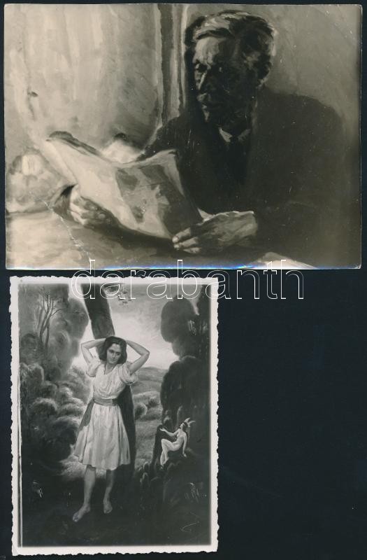Leírás: Festményekről készült fotóreprodukciók, 2 db, egyiken szakadással, 9x12 és 11x15 cm