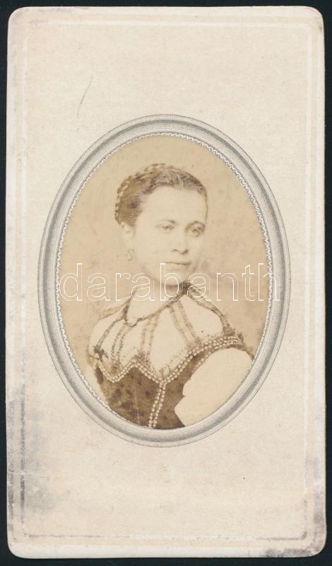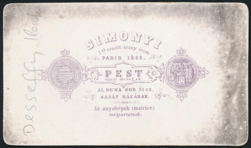 cca 1861 Desseffy Ilonka, később Dégenfeld grófné vizitkártya méretű fényképe, a képet tartalmazó album lapján volt eredetileg feliratozva, Simonyi pesti műterméből, 10,5x6 cm