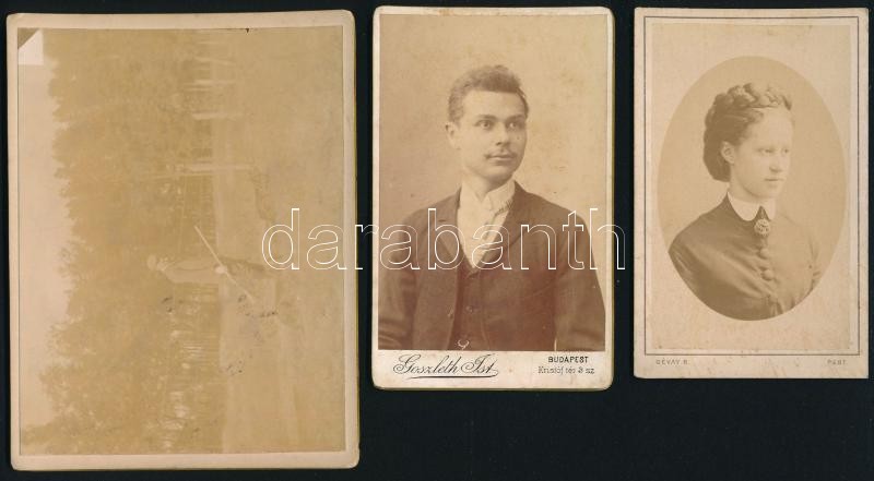 Leírás: cca 1890-1900 Keményhátú portéfotók, különböző műtermekből, 10x6,5 és 21x11 cm közötti méretekben