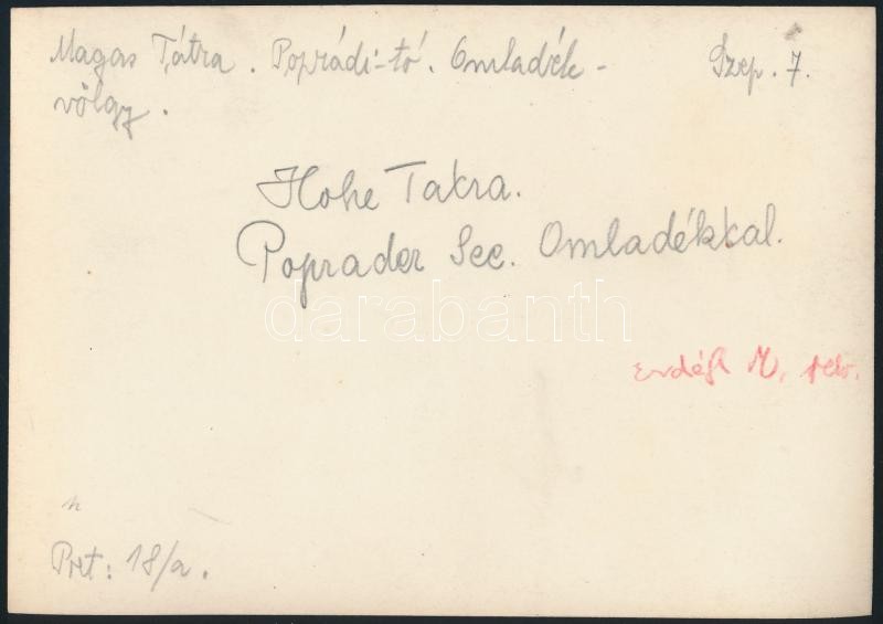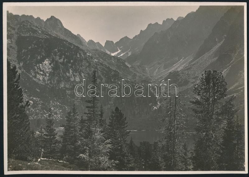 cca 1910 Magas-Tátra, Poprádi-tó, Omladék-völgy, Erdélyi Mór felvétele, hátulján feliratozva, 11,5×16 cm / cca 1910 Vysoké Tatry, the Popradské pleso and the Zlomiská, vintage photo, with notes on its back, 11,5×16 cm