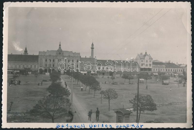 cca 1910 Szatmárnémeti, Deák tér, Pannónia szálló, Kellner és Sándor, Győry Károly, Fischer Antal üzletei, fotó, 11x17 cm / Satu Mare, square, shops, photo, 11x17 cm